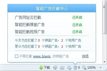智能攔截中心為大家開(kāi)啟廣告網(wǎng)址云攔截、彈窗廣告攔截和視頻廣告攔截的功能。用戶也可隨時(shí)查看被攔截的數(shù)量,并在“選項(xiàng)”中勾選所需的攔截功能。
