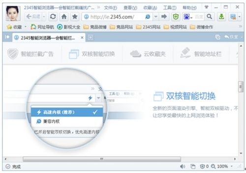 最惹人注目的還是新增的雙核智能切換功能。下載完2345瀏覽器V3.0正式版后,筆者測試和體驗了一下其速度和兼容性兩方面。
