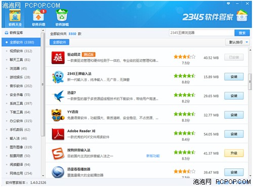 2345軟件管家作為一款專為用戶進(jìn)行軟件管理的功能性軟件,對(duì)PC端用戶的軟件使用提供了極大的方便。對(duì)于軟件安裝使用中較為粗心或喜愛(ài)偷懶的用戶,2345軟件管家將所有軟件進(jìn)行了精細(xì)地分類,用戶根據(jù)個(gè)人偏好進(jìn)行排序,免除了軟件選擇過(guò)程中的苦惱;同時(shí),2345軟件管家還能智能判斷軟件的升級(jí)情況,需要升級(jí)的舊軟件均能一目了然。對(duì)于選擇較為謹(jǐn)慎的用戶,2345軟件管家正版軟件的儲(chǔ)備量及無(wú)捆綁插件的優(yōu)勢(shì)也具有極大的吸引力。