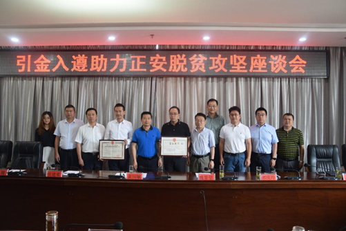 2019年6月24日,正安縣“引金入遵助力正安脫貧攻堅座談會”隆重召開,會議由上海援黔干部、正安縣縣委常委、副縣長李國文主持,正安縣各級領(lǐng)導(dǎo)班子,二三四五集團黨支部書記、二三四五集團董事、貴州融海融資擔保有限公司董事長黃國敏,二三四五公司相關(guān)負責人等出席會議。會議的召開,標志著引金入遵助力正安脫貧攻堅行動全面開啟。會上,正安縣各級領(lǐng)導(dǎo)就貴州融海融資擔保有限公司成立作出指示。