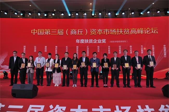 “年度扶貧企業(yè)獎(jiǎng)”:阿里巴巴脫貧基金、比亞迪、碧桂園、博時(shí)基金、東方證券、國泰君安證券、匯添富基金、佳兆業(yè)、京東集團(tuán)、世茂集團(tuán)、申萬宏源、萬達(dá)集團(tuán)、中國平安集團(tuán)、中國建設(shè)銀行。