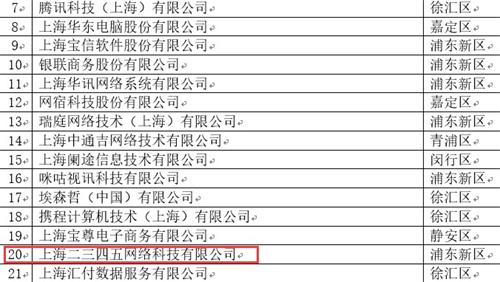 11月20日,由上海市經(jīng)濟和信息化委員會評選頒布的“2019上海軟件和信息技術(shù)服務(wù)業(yè)百強”和“2019上海軟件和信息技術(shù)服務(wù)業(yè)高成長百家”企業(yè)名單公布,二三四五旗下子公司上海二三四五網(wǎng)絡(luò)科技有限公司榮居“2019上海軟件和信息技術(shù)服務(wù)業(yè)百強”第20名、上海洪昇智能科技有限公司榮居“2019上海軟件和信息技術(shù)服務(wù)業(yè)高成長百家”第21名。