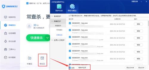 第一步:請先全選并清空安全衛(wèi)士的病毒查殺信任區(qū)